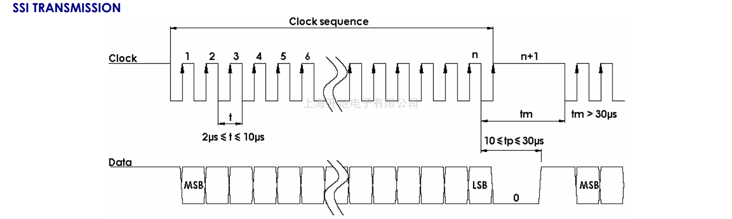 雷恩PRECILEC SSI传输接口多圈绝对值编码器AMH9系列采用SSI通讯接口,响应频率快,它只通过二个信号“时钟和数据”的串行方式来传输而与编码器的精度无关.编码器数据同步读取是根据SSI计数部分给出的时钟频率进行的。